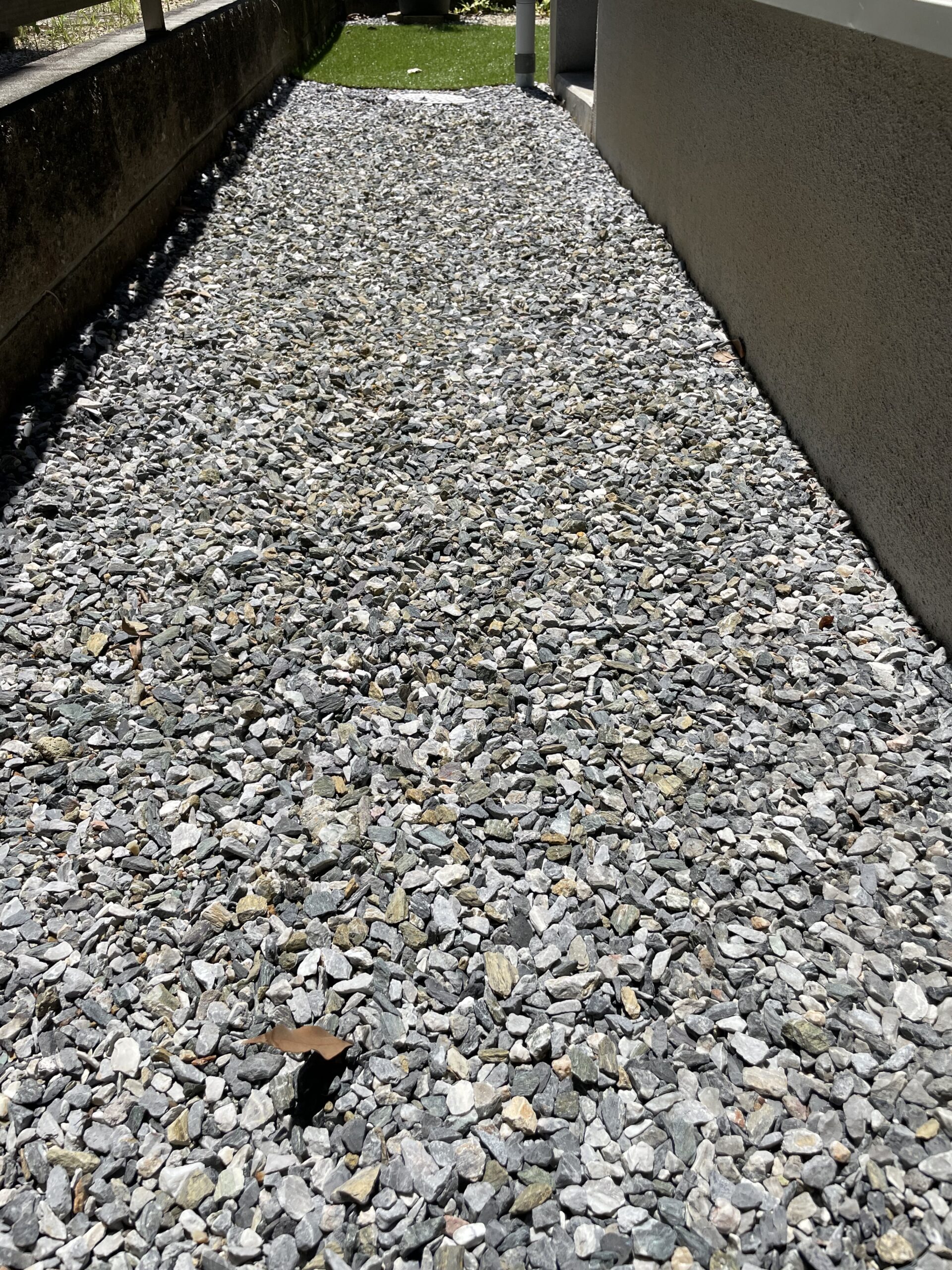 家の横には、防犯砂利として、粒の大きい砂利が敷いてあります。
