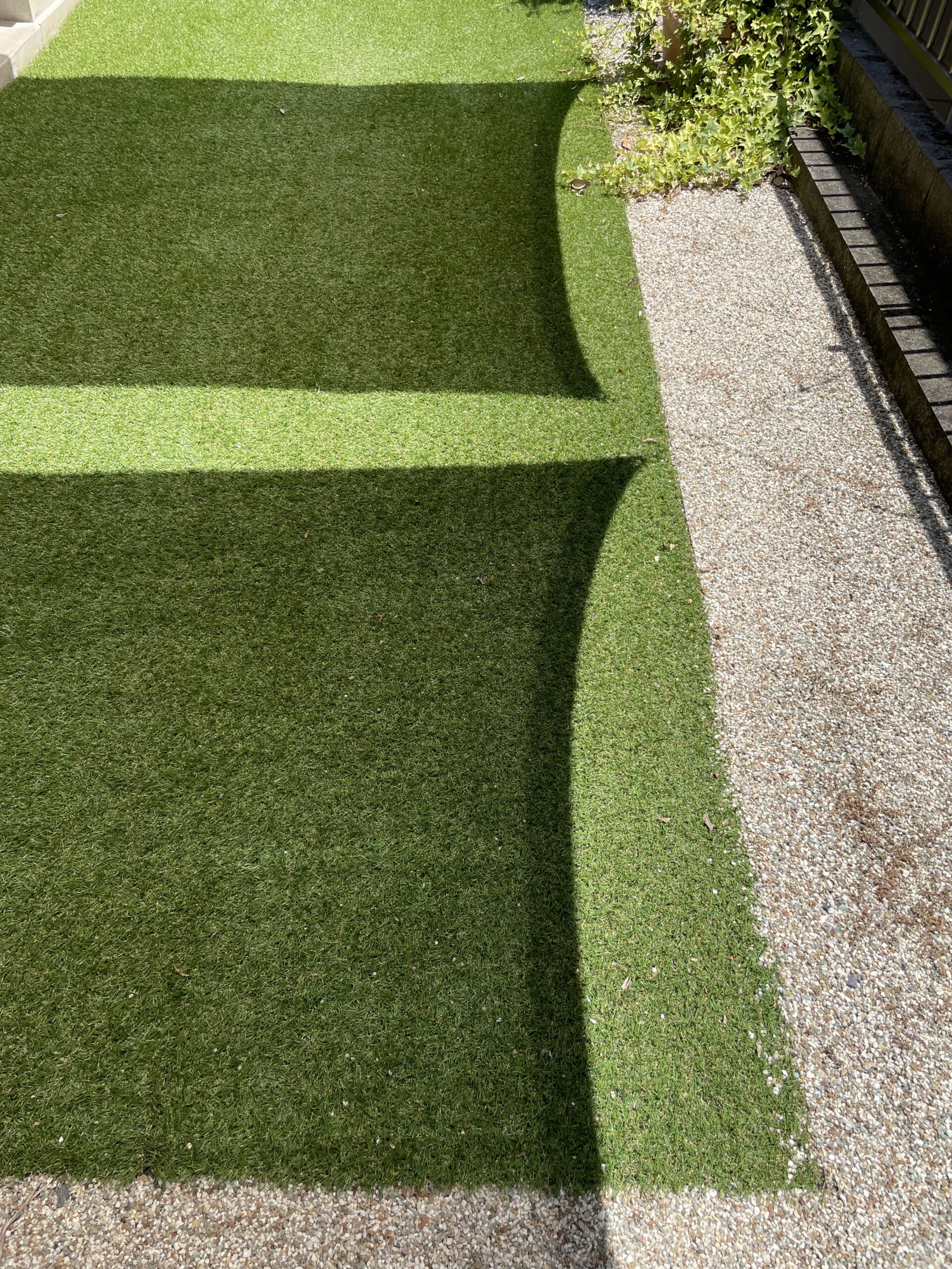 人工芝を敷いた直後は子供が大喜びで、庭に出てきてゴロゴロしていました。
